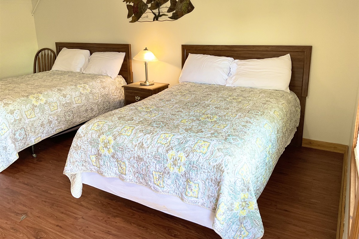 Cabins include 2 double beds (sleeps 4), full bath, color TV, heat and cooled, kitchenette with microwave, mini fridge and sink.